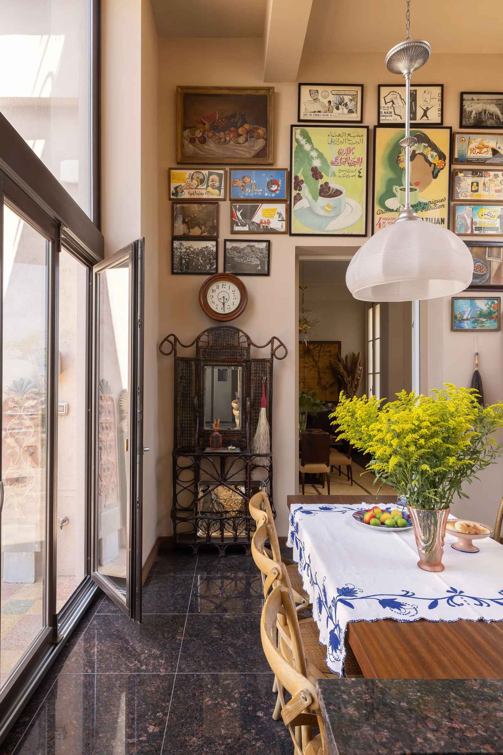 This unique blend makes his home a vivid canvas of cultural expression, reflecting his personal journey and connection to Cairo.