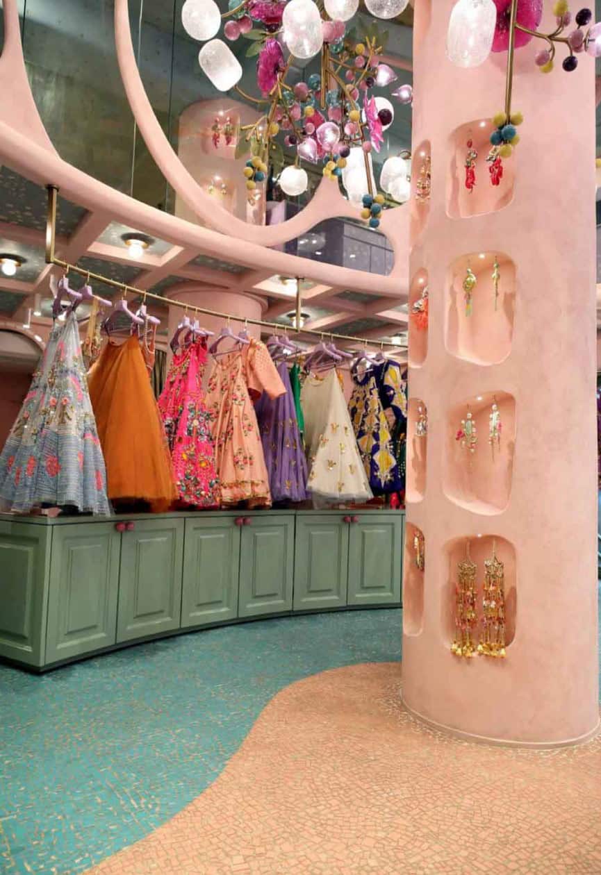 Despite its limited space, the boutique boasts an innovative layout with clever HDF partitions resembling a whimsical net.
