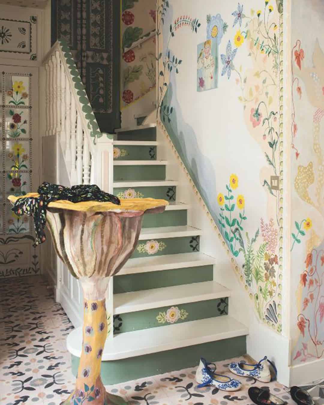 It’s not just a walk upstairs—it’s a stroll through a painted garden.