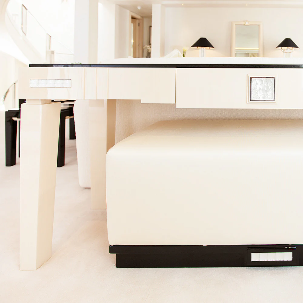 Perfect for modern interiors, the table’s geometry mesmerizes, much like a piece of art. It’s an homage to the creative genius of Lalique’s renowned glass artists.