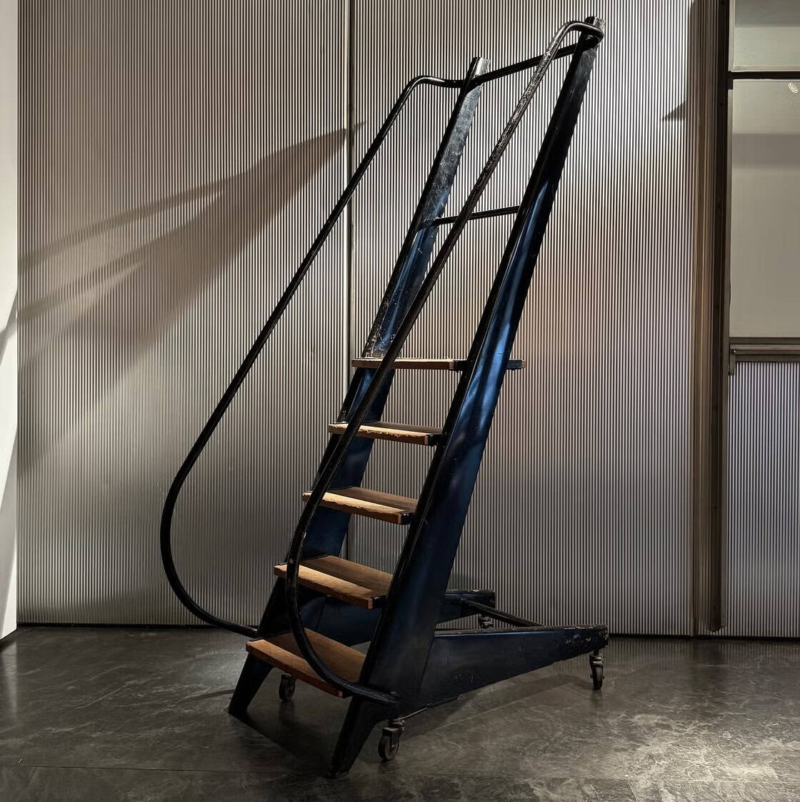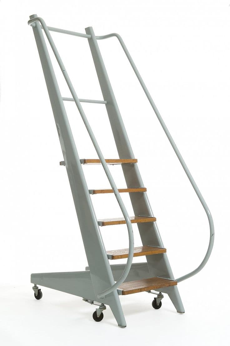 A distinct feature of this stepladder is its singular handrail shape, showcasing Prouvé’s attention to detail.