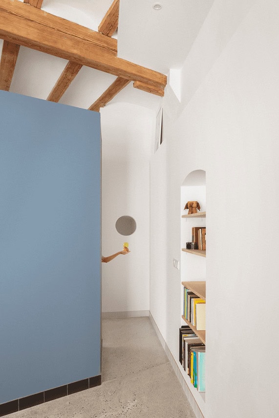 Restoration unveiled the beauty of original materials. Stripped beams and walls reveal historic layers beneath, offering glimpses of past craftsmanship.