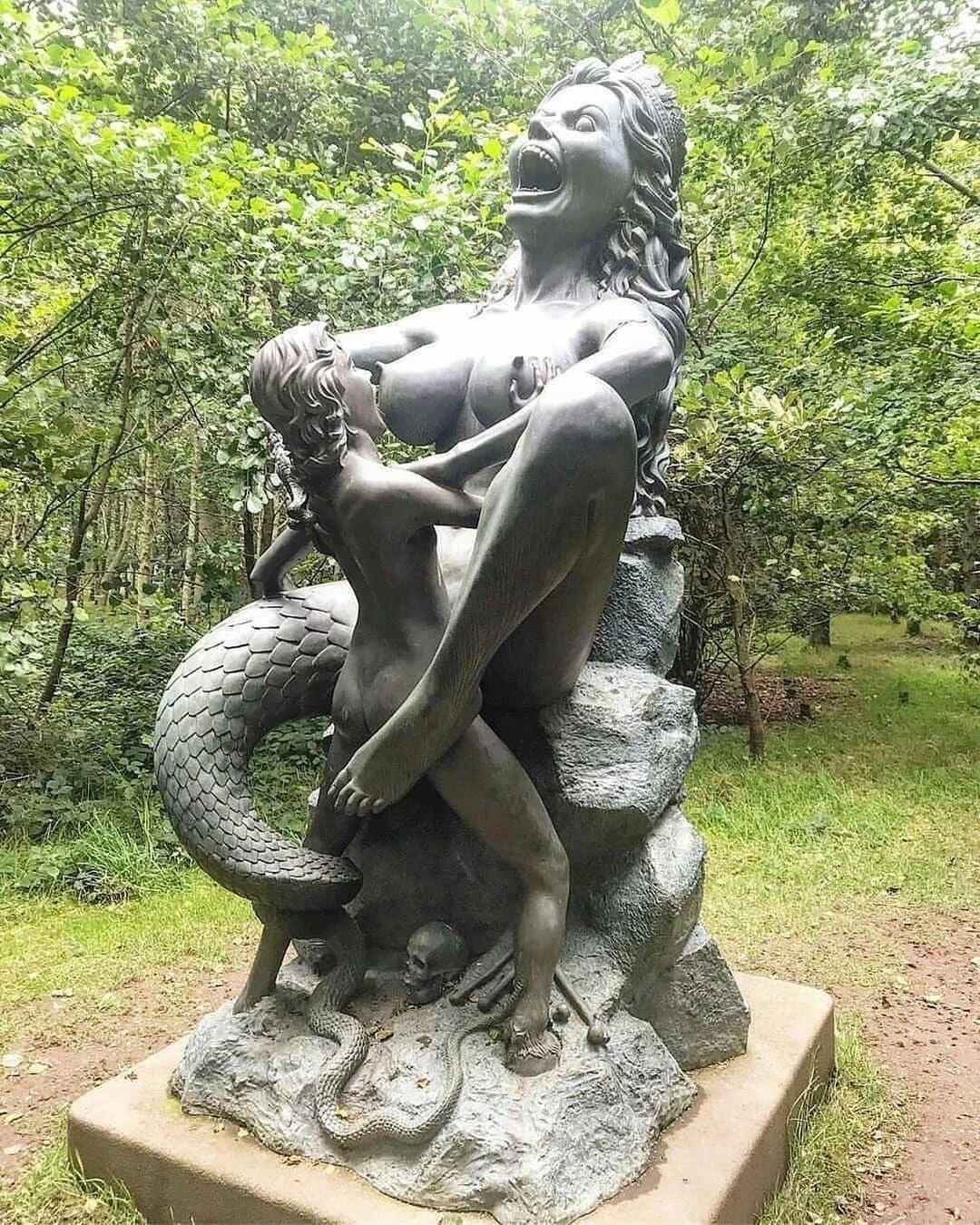 Despite its unsettling appearance, the statue invites contemplation and challenges perceptions of beauty.