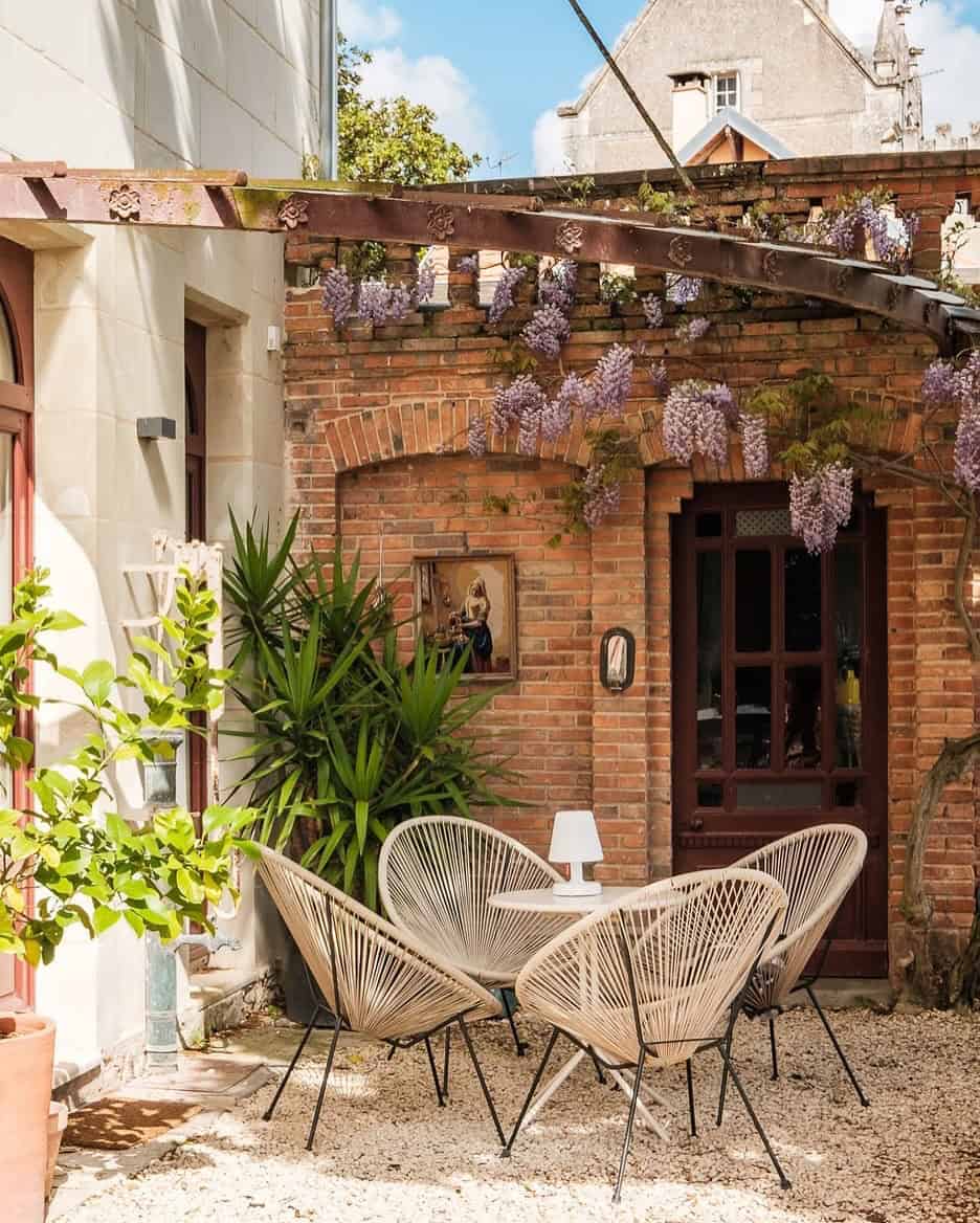 8. Charming Patio with Brick Backdrop